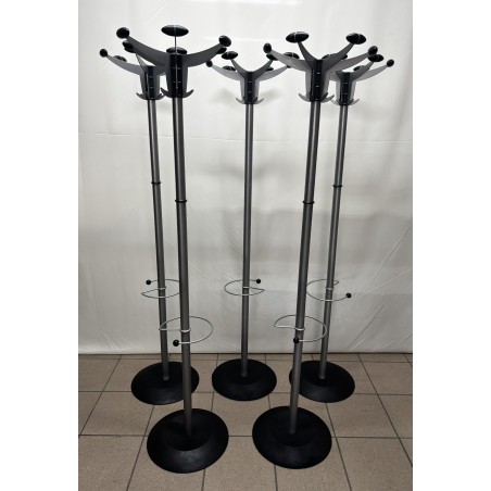 Porte manteaux 4 patèresSocle en métal coloris noirColonne en métal gris aluPorte parapluie50 € HT l'unité