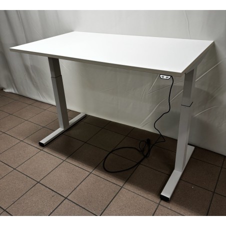 Dimensions : 140 x 80 cmréglable en hauteur de 72 à 120 cmPlateau coloris blancPiétement métal coloris blancGoulotte métal noir sous le plateau